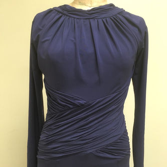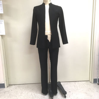 This piece was choreographed By Danielle Rowe especially for the 2019 season gala. Per her request, the dress, made of thin rayon knit, is a ballet interpretation of a dress worn by actress Hillary Swank to the 2016 Oscars. The man's pieces are simple and elegantly tailored.
